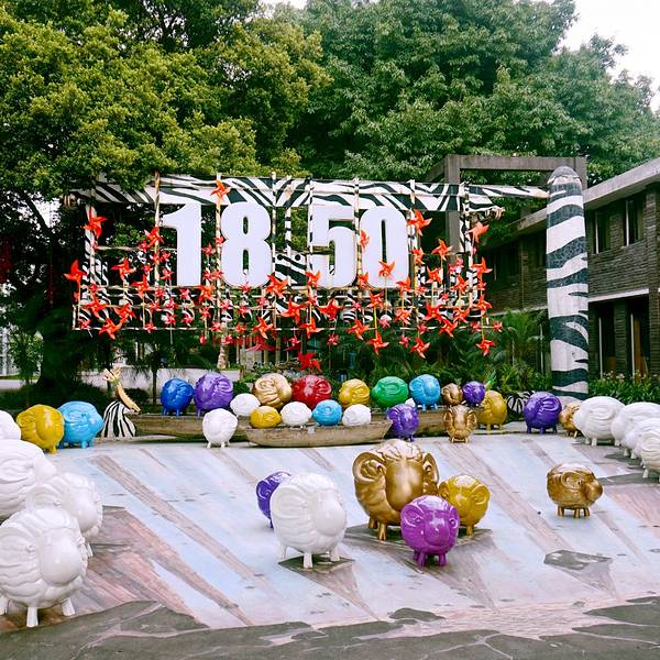 这一期,1850创意园主要展出的是羊多多。“羊多多”萌翻创意园,一进入园区里面就可以看到白色的小羊随意摆放,在园内的正中间有个巨大的1850的字眼,前面还有五颜六色的小羊。 圆滚滚的“羊多多”有七种不同的颜色,代表七种不同的性格。这个承载着广州羊文化的动漫形象,已经在越秀公园、“小蛮腰”、广府庙会、迎春花市等场所展览过。如今,“羊多多原创展”回到了孕育它的起源地——1850创意园,进行为期1个月的展览。