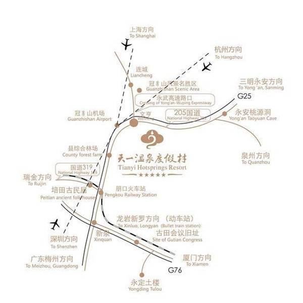 天一温泉度假村毗邻素有“北夷南豸,丹霞双绝”美誉的国家重点风景名胜区、国家AAAA级旅游景区—...天一温泉度假村毗邻素有“北夷南豸,丹霞双绝”美誉的国家重点风景名胜区、国家AAAA级旅游景区——冠豸山,地处闽粤赣三省交汇核心——连城县,地理条件优越,距高速路口5公里、机场7公里、火车站25公里,交通十...天一温泉度假村毗邻素有“北夷南豸,丹霞双绝”美誉的国家重点风景名胜区、国家AAAA级旅游景区——冠豸山,地处闽粤赣三省交汇核心——连城县,地理条件优越,距高速路口5公里、机场7公里、火车站25公里,交通十分便利。项目总占地面积5000亩,一期投资4亿多元,已荣膺“国家AAAA级旅游景区、国家五星级旅游饭店、金叶级绿色饭店”等称号,是集温泉度假、养生保健、休闲娱乐、餐饮、住宿于一体的新型温泉旅游综合体。