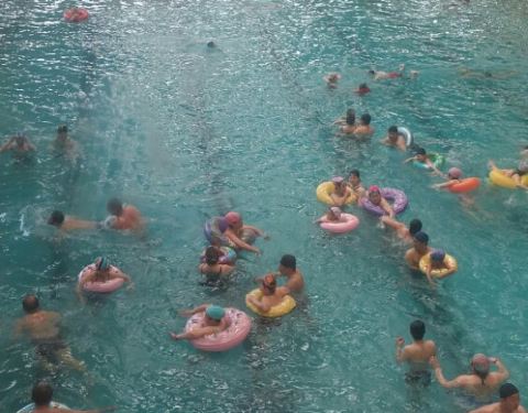 这个地方怎么说呢!装修的不错,吃饭住宿游泳。泳池装修的蛮好