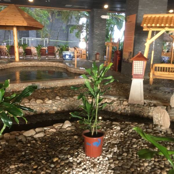 温泉养生区、温泉保健区、现代热力按摩区、鱼疗区等几十种形式风格各异的温泉泡池。每个房间都配有浴衣