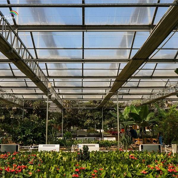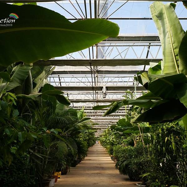 植物园占地两万平方米 园内采用温泉循环水供暖 属于大型连栋智能温室