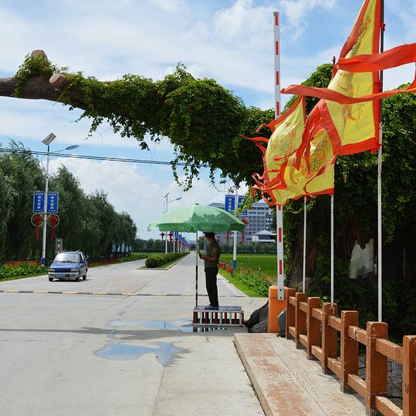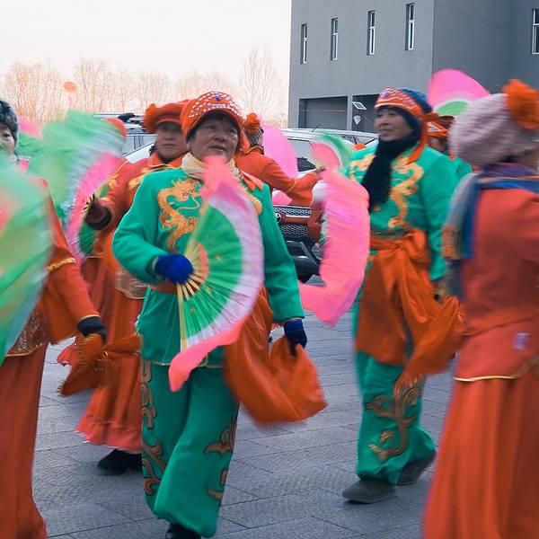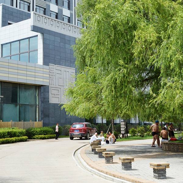 园区占地面积500万平方米此时门口正在上演着东北大妈们的扭秧歌