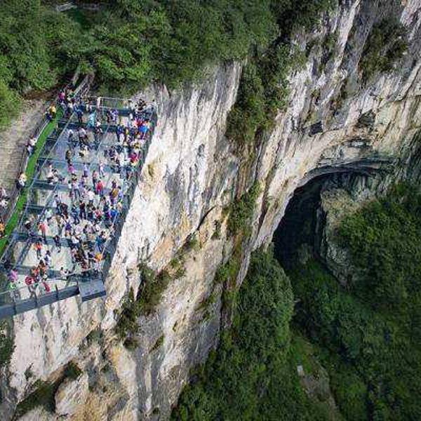 在天生三桥2号入口处,海拔1200米,站在眺台上可以直接透过玻璃看到脚下280米深的天生三桥,可以作为一个绝佳打卡点,恐高的朋友不要尝试哦。2、天福驿站