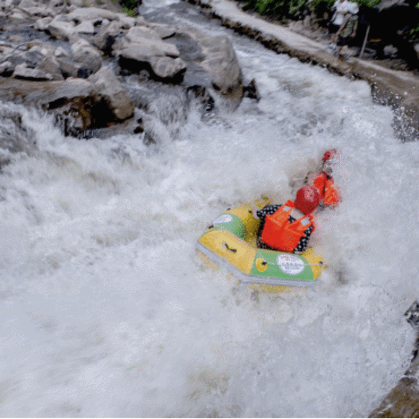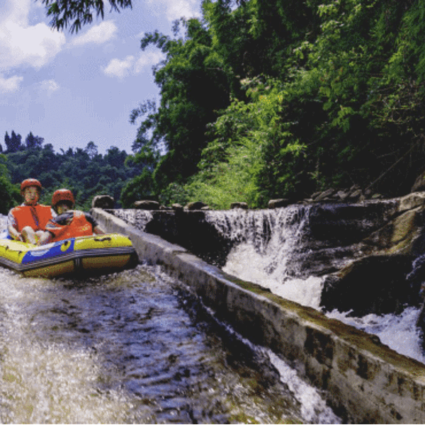 人在艇中或沉或浮,追波逐浪,酣畅淋漓,尽情飞舟。河道分为上下游,上游地形弯曲起伏惊险刺激,超大落差,给你强力失重感。下游为“儿童漂流”,河道宽敞,水流平缓。