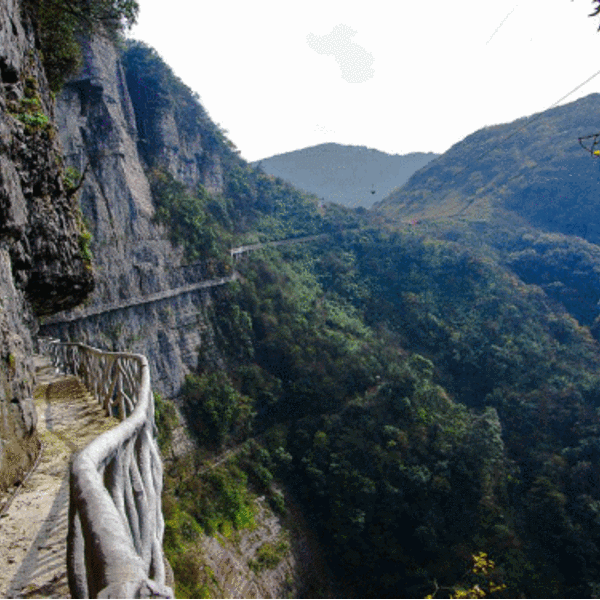 不用去泰山华山,在重庆就能感受到悬崖陡壁带来的刺激体验。全程大概2公里,贴着笔直的悬崖而建,走在上面如凌空飞步,南川美景尽收眼底。碧潭幽谷