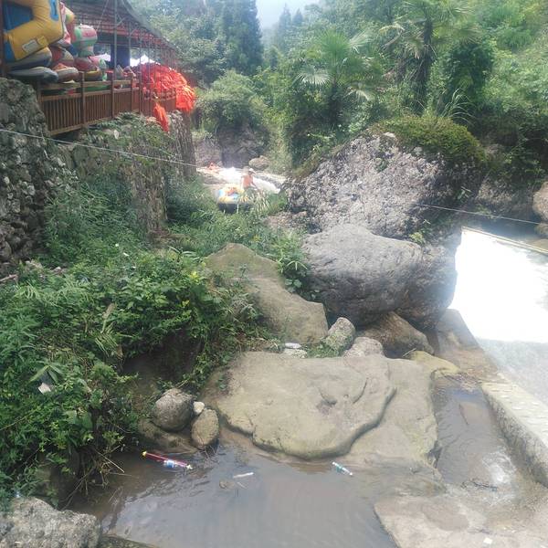星期天去的,如果可能,最好错开周末和节假日人多。去的晚可能满员不能漂或赌很长的车队,毕竟两车道的路 。高新西区早上8点出发,10:30到,中间有个三郎镇逢集堵2公里车,估计是逢双赶集,还要经过九龙沟漂流.。人不算很多,排10分钟队就开始了。不管开车还是坐其他车,一开始到的地方是漂流的终点,自驾游的话,车可以在这里自己找个停车场把车停好,10元,准备的衣服就放车里。手机带上,因为要拍照啊,然后到终点处小摊上买个防水袋挂脖子上,这是重点!终点处有到出发点的免费大面包车,坐上去上山,上山有4公里,那些面包车师傅过于相信自己的技术了,开的都较快,可能是天天在那条路开吧麻木了。