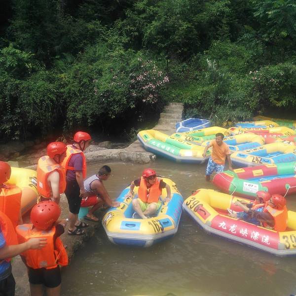 出发点换票,出发!想漂平缓的就九龙沟,想刺激的一定要九龙峡。刺激开始了*……因为九龙峡的点评太少,我走了冤枉路,所以我今天在这里给大家唠唠,希望对还没去的朋友有用!网上订的票,网上订166元,到现场买186元。说重点了:崇州在网上有两个九龙*的漂流项目:九龙沟漂流和九龙峡漂流,这...因为九龙峡的点评太少,我走了冤枉路,所以我今天在这里给大家唠唠,希望对还没去的朋友有用!网上订的票,网上订166元,到现场买186元。说重点了:崇州在网上有两个九龙*的漂流项目:九龙沟漂流和九龙峡漂流,这是不一样的两个地方,两个起点相距10公里左右,九龙峡在上游,比九龙沟刺激多倍!当然价格也贵几十元,但是我认为值!想漂平缓的就九龙沟,想刺激的一定要九龙峡。安全挺放心,几十米一个安全员,沟都是经过人工处理过的,没有安全问题。