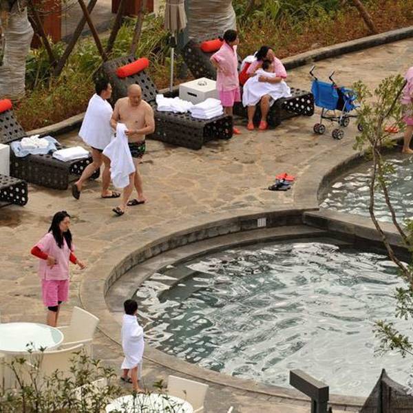 就到了水公园的温泉区在经历了前面几天的长途奔波之后