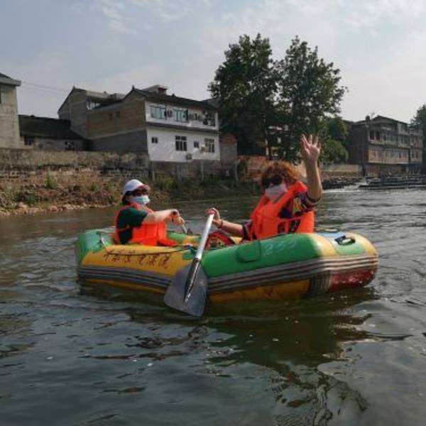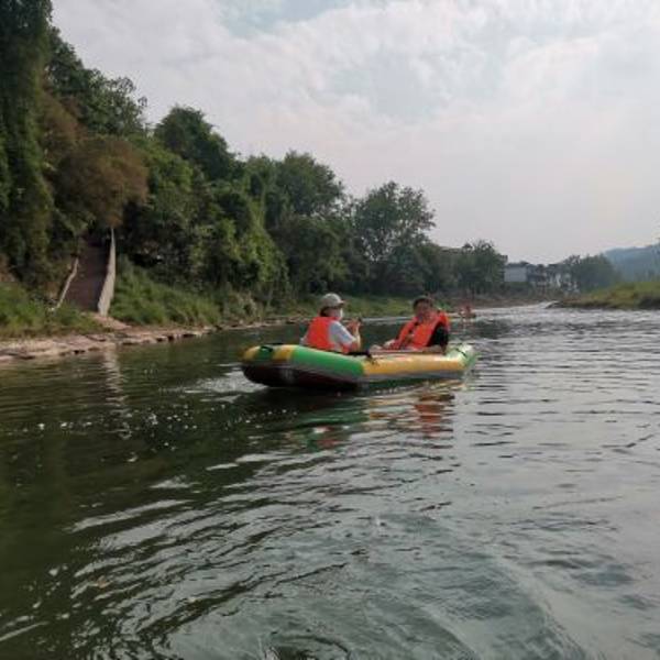 感觉有点刺激,容易把衣服打湿,其它地方都和公园的划船差不多,两岸的景色还是挺美的,整个漂流下来...救生衣很脏,并且是湿的,只能将就穿,现在正值夏季多雨季节,河水很黄。漂流就开始了,两人一个船,每一小节的河水流得很轻缓,不划桨的话,气垫船会顺流而下,有五个左右的地方河水稍微有点点急,感觉有点刺激...救生衣很脏,并且是湿的,只能将就穿,现在正值夏季多雨季节,河水很黄。漂流就开始了,两人一个船,每一小节的河水流得很轻缓,不划桨的话,气垫船会顺流而下,有五个左右的地方河水稍微有点点急,感觉有点刺激,容易把衣服打湿,其它地方都和公园的划船差不多,两岸的景色还是挺美的,整个漂流下来估计1小时左右,飘到最后下雨了。 展开