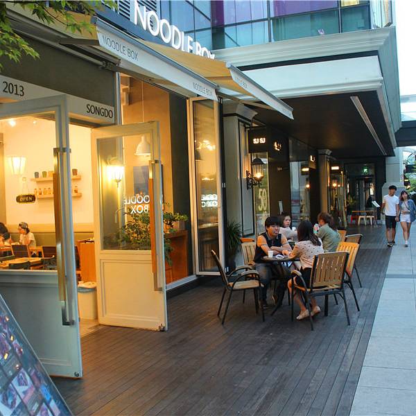面条箱子(Noodle Box)是一家泰式炒面店,在韩国刚刚兴起不久,最近很受年轻人欢迎。位于水道步行街的这家店更是经常有人排队,一是因为这家店和传统的韩国料理差别很大,每个人都慕名而来,另一个原因是水道步行街的设计也给位于一旁的美食店加分,坐在水道旁边吃饭,增加了浪漫的元素。这家的泰式炒面和中国的炒面差别很大,里面的调料很适合中国人口味,不过感觉面的火候不是太够,或许这也正是本店原有的特色。