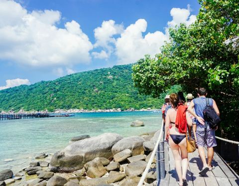 从曼谷出发,到苏梅岛,车船连票可以在网上购买,折合成人民币220左右,尤其是火车,会让你体验一秒钟硬座变硬卧。从苏梅岛乘快艇到龟岛需要2小时,如果是普通轮船,则需要4小时。赛努恩海滩 就在龟岛西侧,所以来这里有比龟岛其它海滩多了两样更特色的东西,一样是落日,一样是海滩酒吧。