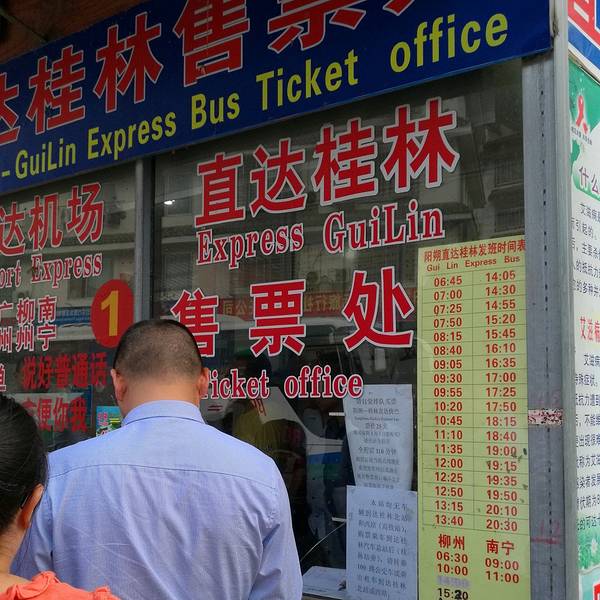 这里还有从阳朔直接到桂林机场、柳州、南宁、广州的车次,车次和票价忘记拍照了。但这里没有到桂林北站或桂林西站的车。