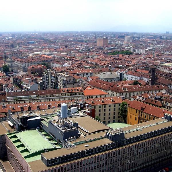 从瓦伦蒂诺公园 Parco del Valentino看Mole在Monte dei Cappuccini山顶平台上看Mole从卡斯特罗广场沿着波街 Via Po一直走,拐入一个巷子,就可以看到了作为意大利工业化建筑的代表建筑,整体为钢结构,实物还是相当雄浑壮观的!Mole的顶层,全景电梯在59秒内就可以穿过博物馆中心区域飞速达到85米高的屋顶平台视野很开阔:红色屋顶,巴黎、布拉格的屋顶也都是这种朱红色远处苏佩尔加山,真的很像紫金山啊!