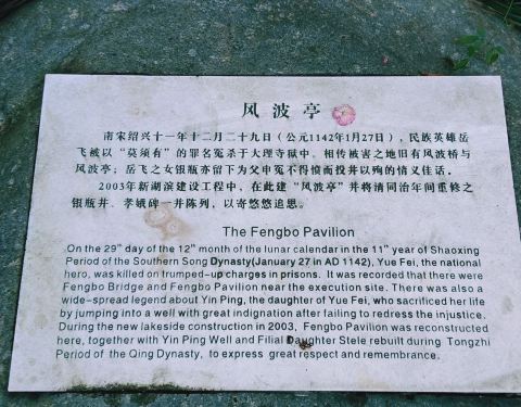风波亭其实就是个普通的亭子了,而且是重修的,小时候听过岳飞传评书,总想看看是什么样,后来看到了,也就那么回事儿吧。