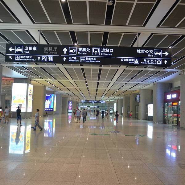 乘坐4路、9路、 31路、 65路、99路、156路公交车在【合肥南站】公交车站下车。