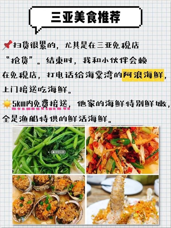 📌扫货很累的,尤其是在三亚免税店“抢货”。结束时,我和小伙伴会赖在免税店,打电话给海棠湾的阿浪海鲜,上门接送吃海鲜。