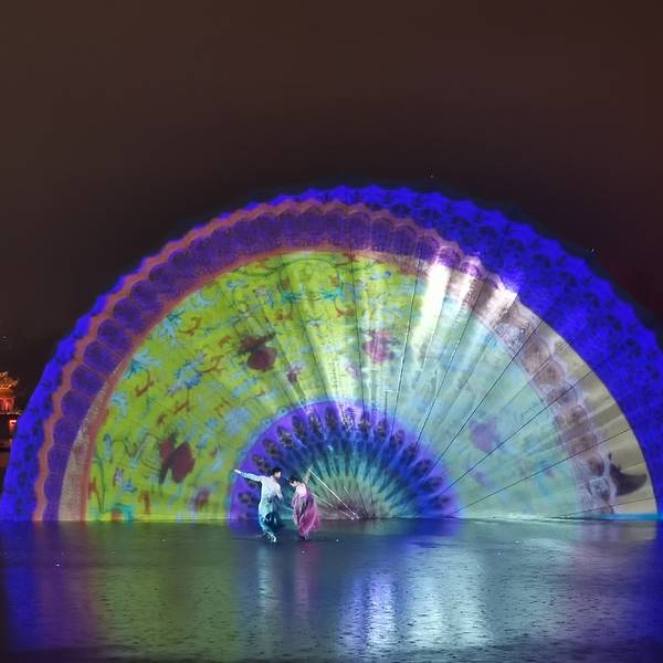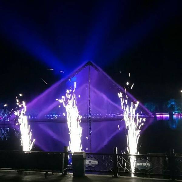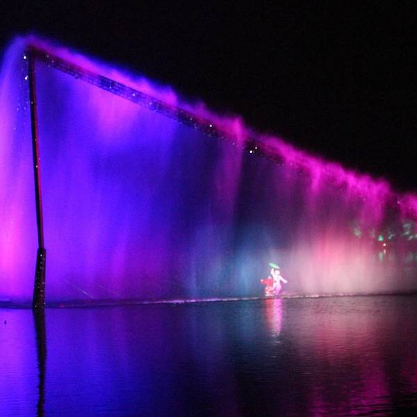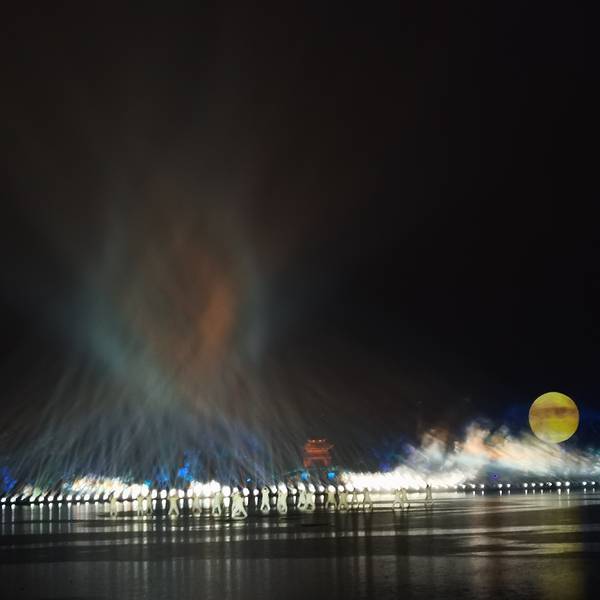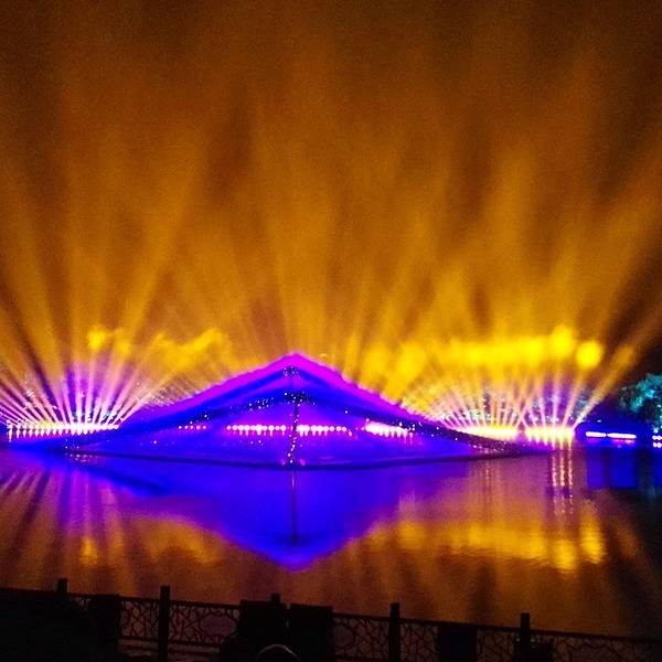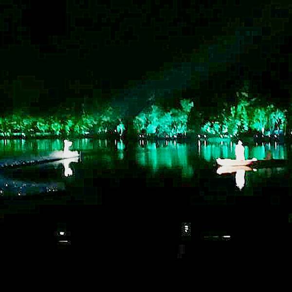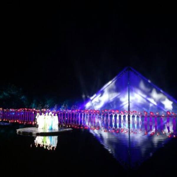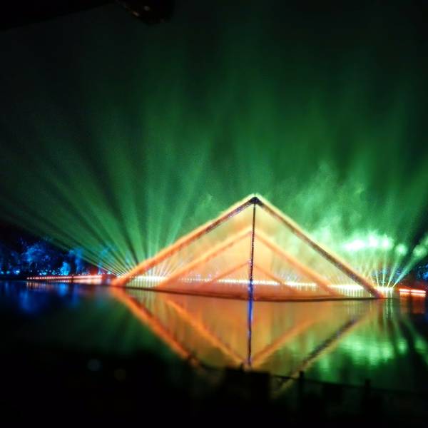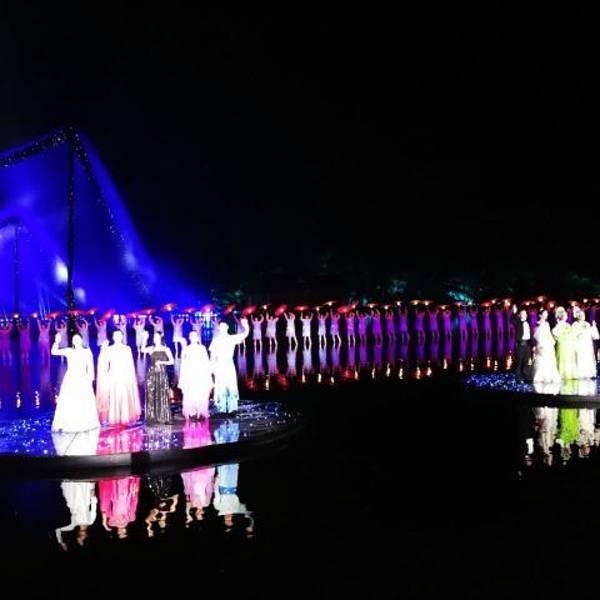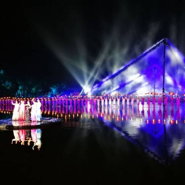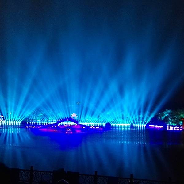 3.整个表演给我的感觉还是很震撼的,但是区别于以前看过的丽江印象,这个似乎没有那么气势磅礴,而是从一个很细腻的角度抓住你的内心,回荡在空气的音乐是那种不能说是悲壮,但确实有很凄美的那种感觉,去之前也没做功课,当时就是看热闹,回来网上查才知道讲的是什么,建议去之前先查,这样看的时候更加有共鸣,张靓颖空灵的声音对整个演出起了一个升华的作用,大型的水幕效果做的真的很棒,视觉冲击还是很震撼的,最后升起的有点水屋效果的,搭配了五颜六色的光影,还有很多的水雾,感觉很迷幻,从视觉和听觉都推向了高潮。