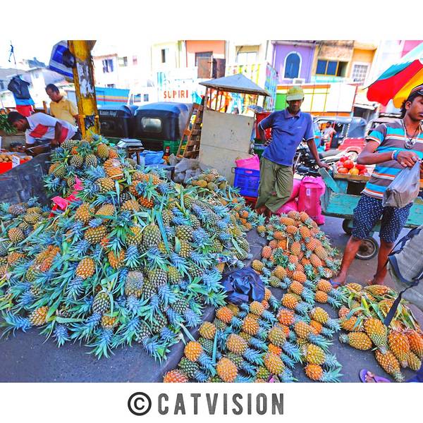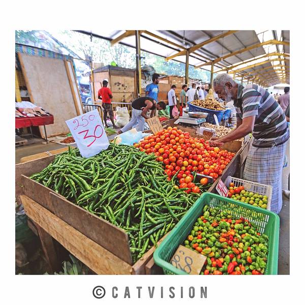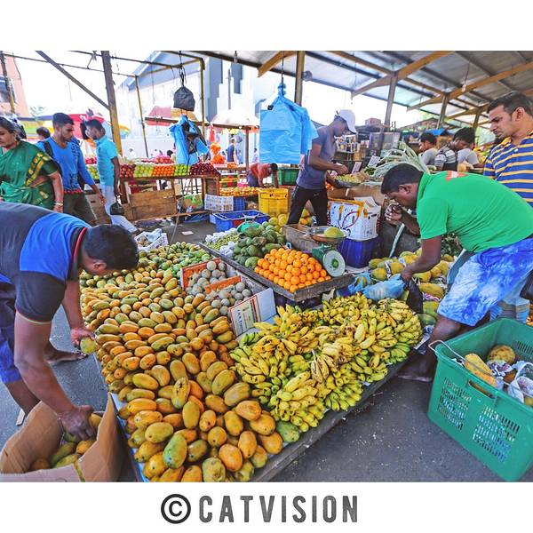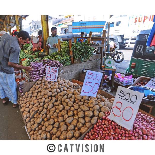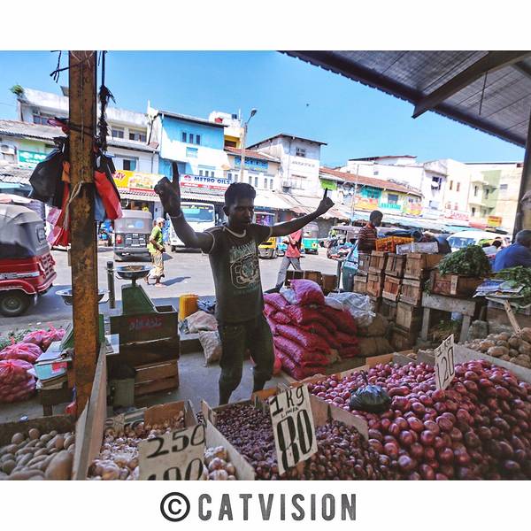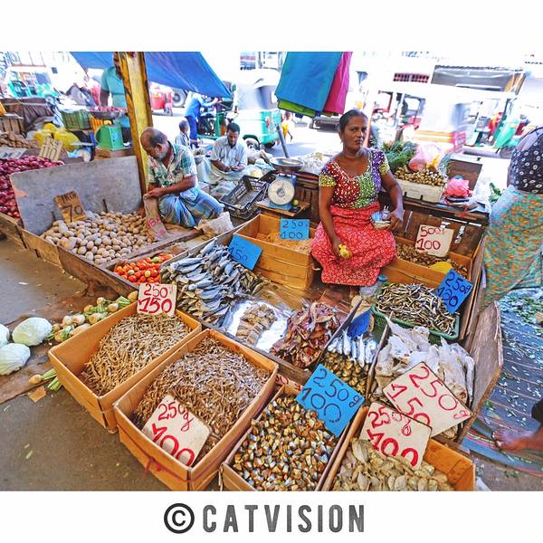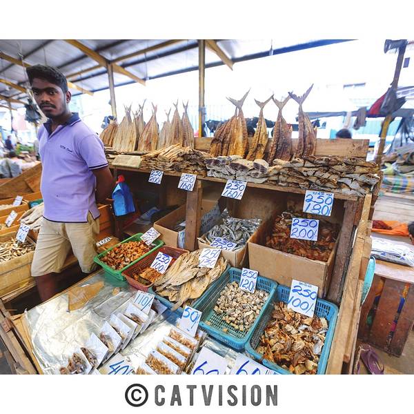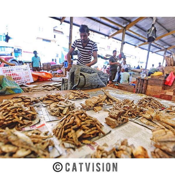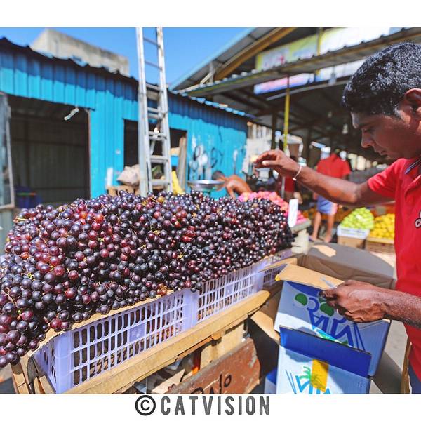 在这里,你可以买到最新鲜的水果蔬菜!这也是我最爱逛的市场~~不知道这个是不是斯里兰卡当地的木瓜,个头超大的。经常逛菜场的猫妈看了看菜价,说还是比国内便宜的,而且明显蔬菜的个头要大了不少。好久都没看到如此新鲜的蔬菜了呢!个头饱满,色彩鲜艳,令人垂涎欲滴啊哈哈!小贩的吆喝声不绝于耳,纷纷使出绝技,来招揽客人。如果想烹饪地道的兰卡美食,必须买上一些当地的秘制香料,这样做出来的味道才正宗。瞧瞧这些水果,感觉每个都想来上一口啊!看到了新鲜的葡萄,其实应该是提子,sandun很热情地买了一串给我们品尝,香甜可口,十分多汁。之前在康提看到的鱼干,这里也有卖,而且品种更多。