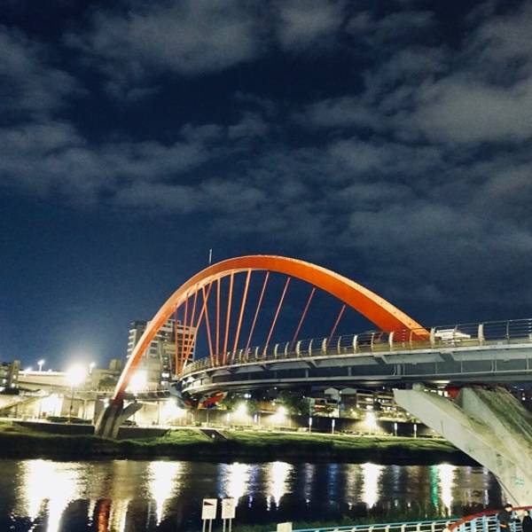 搭松山捷运或公交车28,51,53,203,204,205,276,306,311,518,605,622,629,668于松山车站下车,再步行至彩虹桥。