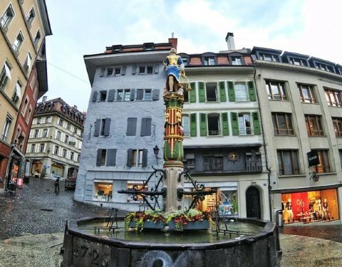 这个广场就是洛桑的市中心广场,规模不大,但是挺有趣的,广场周围的建筑很密集,不过全都是非常有历史的古典建筑了,广场的中心是一个喷泉。