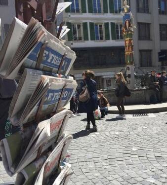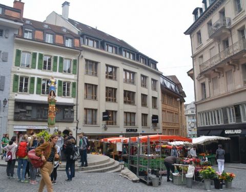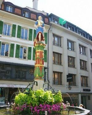 这是位于洛桑市中心的广场,但是广场的中心范围其实挺小的,主要是以一个女战士的雕像为主吧,但是很热闹,有很多的鲜花店,游客也很多。