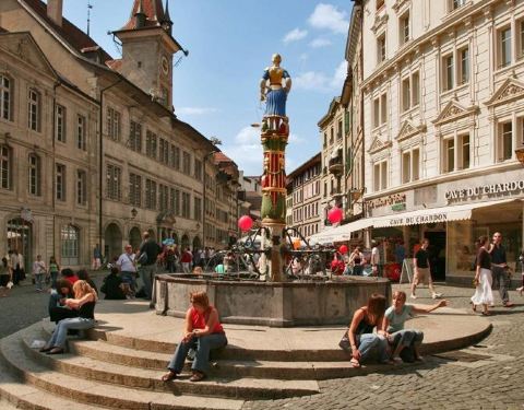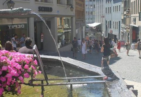 这个广场是洛桑老城区最繁华的地方了,广场以中心的雕塑喷泉为标志,周围一圈全是一些古老的建筑,然后是繁华的步行街,游客非常的多,商业很繁荣。