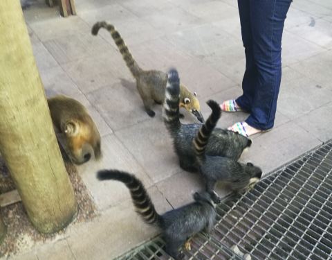 而瀑布的夕阳和落日偏偏是最美的,所以非常建议来伊瓜苏国家公园游览多安排一晚,住在景区酒店内国家公园内除了伊瓜苏瀑布,还有很多野生动物栖息点,比如小浣熊随处可见,但是如果想要见到珍稀的猎豹,可就必须要运气爆棚了。 出租车是不可以进入园区内部的,但是景区内有免费的游览车。在瀑布最尽头还有很多...国家公园内除了伊瓜苏瀑布,还有很多野生动物栖息点,比如小浣熊随处可见,但是如果想要见到珍稀的猎豹,可就必须要运气爆棚了。 出租车是不可以进入园区内部的,但是景区内有免费的游览车。在瀑布最尽头还有很多餐厅和纪念品商店。 不过每天下午五点,景区内是清场的,只有住在景区唯一酒店的客人才可以留下。而瀑布的夕阳和落日偏偏是最美的,所以非常建议来伊瓜苏国家公园游览多安排一晚,住在景区酒店内。 展开