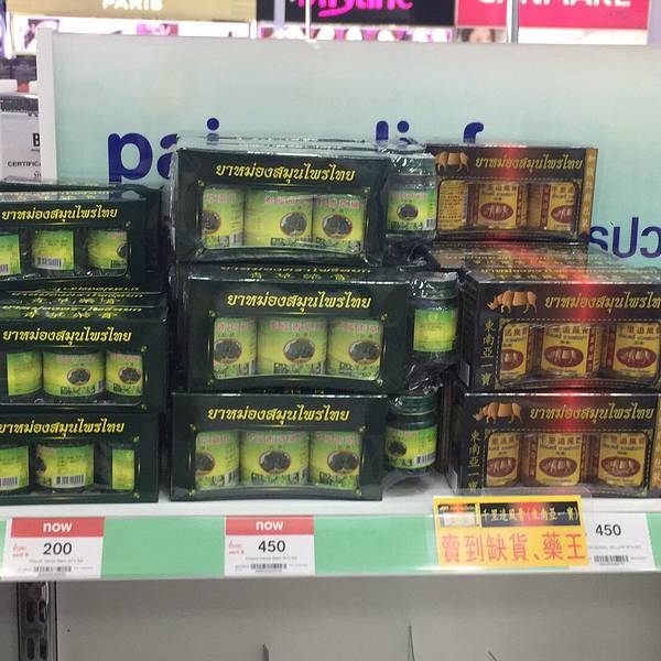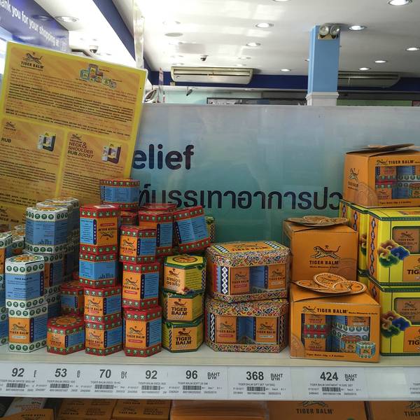 这家boots在古城东边,塔佩门正对面,地理位置极佳,之前看去哪儿的地标,显示在城南,原来是标志的错误。相比起其他商场内的boots,这家门店很大,值得一去。主营化妆品和药品,优惠和促销还是有一些的,价格也就是跟屈臣氏不相上下,不知道大部分人觉得泰国扫货是什么意思,相比较起经常去香港扫货的我来说,不觉得这里的东西促销很划算。其次商品全英文和泰文,并不亲和中国人的采购,服务态度也比不上屈臣氏的热情,标签都懒得写个“买二送一”。更何况那么多功效的区分,英文不好的小伙伴感觉各种心累。所以建议大家出门之前记得做好攻略,拿着图片再去找,买些实用以及划算的商品,建议多关注买一送一之类的价目,能刷卡还是方便一些。接下来就是这个蜈蚣丸,朋友强烈推荐,差不多3块钱一小包,据说治疗嗓子痛咽喉炎比较好,泰国原产,倒是蛮多中文的翻译。不过强调一下,是据说,我嗓子还好,没有亲身尝试。这个则是强推的驱蚊水,据说7小时防蚊,价格还是有些贵,合下来小瓶都要七八块钱,这冬日我依旧没得体验,大家自己决断。最后就是青草药膏,也是貌似被扫货的目标,比较好找。 建议大家出行之前多做攻略,查找一些性价比高的商品再进行采购,英文不好更要注意,这里的服务生基本不会中文