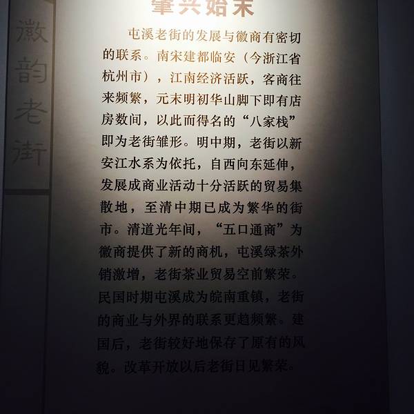 ...发展及变迁,博物馆很小,有个10多分钟就可以逛完了,在来老街玩的时候可以去看一看,了解一些历史这个在屯溪老街里的博物馆,主要介绍的是屯溪老街的由来,发展及变迁,博物馆很小,有个10多分钟就可以逛完了,在来老街玩的时候可以去看一看,了解一些历史。