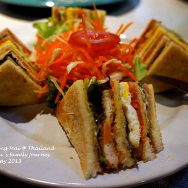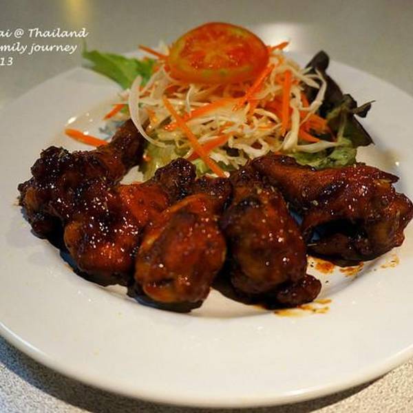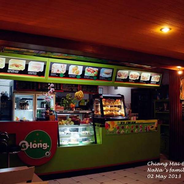 原计划是去吃千人火锅,由于午餐吃的晚加上刚刚大爱的iberry,娜娜一家几乎无饿意。不过,晚饭总是要吃的。G-long的招牌实在是很像E-long,抱着试试看的心理,娜娜进门找位子了。连日来的泰餐,让娜娜觉得必须换个口味,比较西式的菜品很合娜娜的胃口。 2份饭,烤翅根,沙拉,三明治,总共445B,折合rmb不到100块,相当便宜!除了室内,G-long还有个院子,可以在院子里就餐,这里环境也相当不错哦。