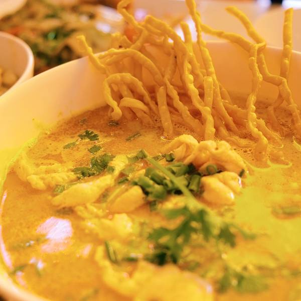 特色的椰奶味的冬荫功汤很好吃,里面的椰奶是很清淡的,总体的口感还是有一点酸辣的,然后泰式的炒米粉是那种宽的粉,味道也很浓郁,很不错,这一家人也挺多的。
