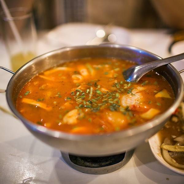 - 特色的椰奶味的冬荫功汤很好吃,里面的椰奶是很清淡的,总体的口感还是有一点酸辣的,然后泰式的炒米...