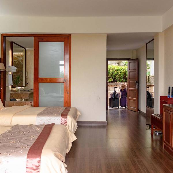 4、请到游客中心签到处窗口办理入住,酒店房价包含双门船票。
