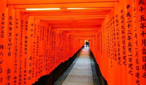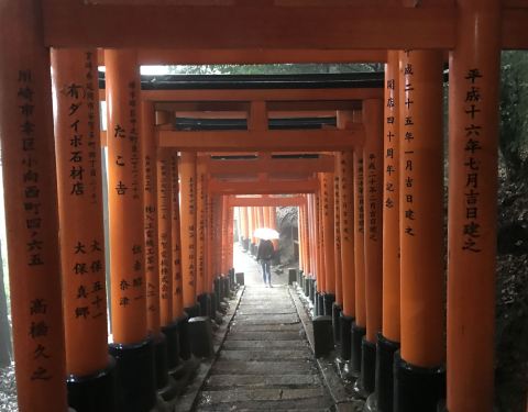位于稻荷大社的登山路上的千本鸟居⛩️非常壮观,上面刻有资助的公司或个人的名字,有新的令和元年新...位于稻荷大社的登山路上的千本鸟居⛩️非常壮观,上面刻有资助的公司或个人的名字,有新的令和元年新建的,登到山顶可以一览美丽的京都。爬到山顶需要一定的体力。