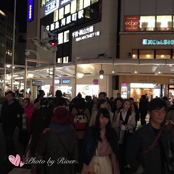 河源町是一个商业区,晚饭结束,正好可以逛逛,顺便消食! 【四条河原町】:河原町一带是指河原町大街与四条大街相交叉的四条河原町十字路口一带的繁华区,是京都最繁华的街道四条大街的中心地带,这里有阪急百货、京都マルイ、高岛屋、藤井大丸百货、河原町OPA等大型百货商店,是京都最繁华的商业区,绝对是女孩们的购物天堂。晚上九点的河源町,依然热闹非凡!前段时间,朋友圈里传得沸沸扬扬的关于日本辐射的文章,可依然还有这么多人来日本旅游!呵呵……