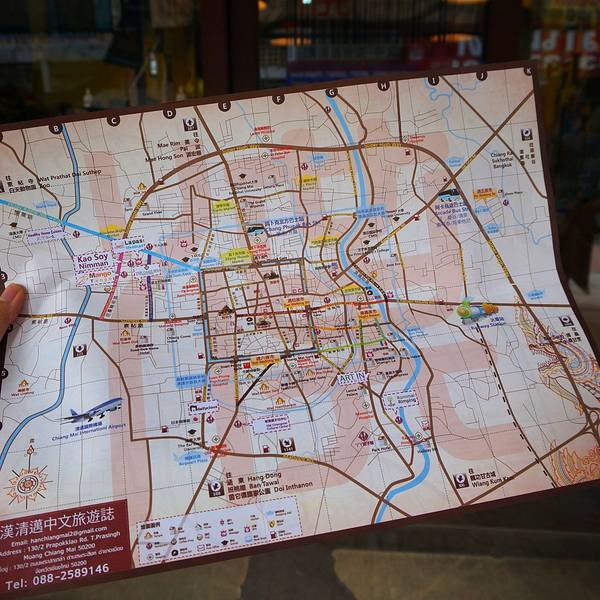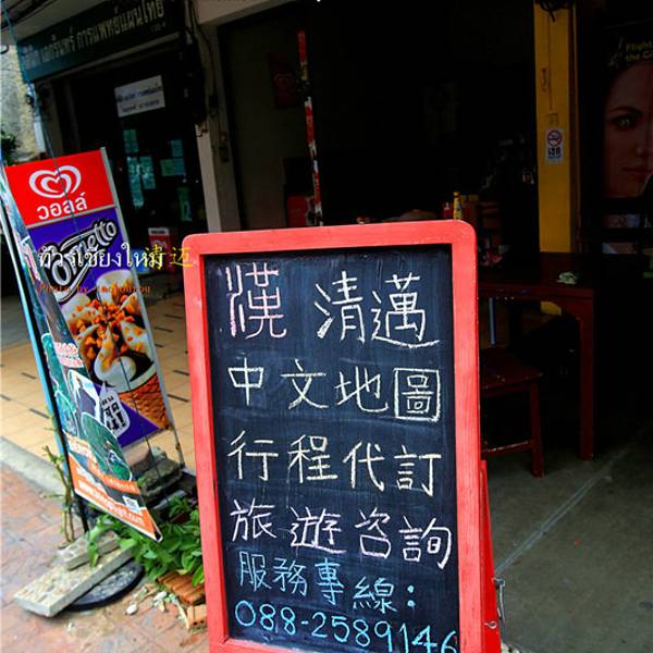 里面也有很多半日游,一日游的项目。解决完资金问题后,我们往右边走,找到了大名鼎鼎的“汉清迈”旅行社解决完资金问题后,我们往右边走,找到了大名鼎鼎的“汉清迈”旅行社。不为别的,只为拿一份古城的中文地图。