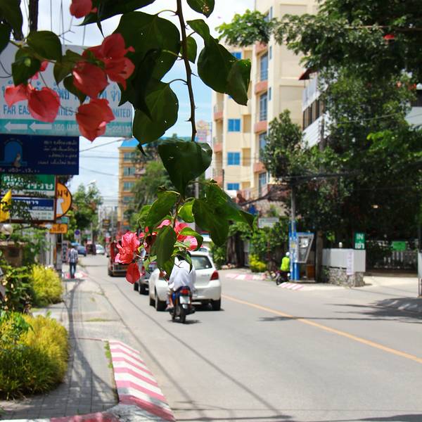 路边随处都是鲜花布置的美景。为了找汉清迈也没时间细细游览了。订好了最后两天回清迈的半日游骑大象行程清迈额第一天开始啦。