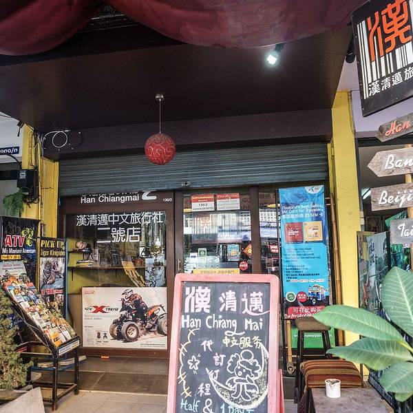 去了汉清迈,他们会给你一本小册子,里面大概是哪里好玩,有详细的中文地图和中文介绍,还有一些优惠...我们去的是二店,位置在古城中心,面对着盛隆骨寺(Wat ChedLuang)大门往左手边走约200公尺。地址是130/2Prapokklao Road.T.Prasingh Muang Chiang Mai 50200。一店在塔佩门内侧,面对着Hotel M往右走一会就到了...我们去的是二店,位置在古城中心,面对着盛隆骨寺(Wat ChedLuang)大门往左手边走约200公尺。地址是130/2Prapokklao Road.T.Prasingh Muang Chiang Mai 50200。一店在塔佩门内侧,面对着Hotel M往右走一会就到了。去了汉清迈,他们会给你一本小册子,里面大概是哪里好玩,有详细的中文地图和中文介绍,还有一些优惠劵什么的,记得问他们拿地图。不过他们的地图不算特别详细,最好去摩托车店或者旅游代理那里领取免费的英文地图。 展开