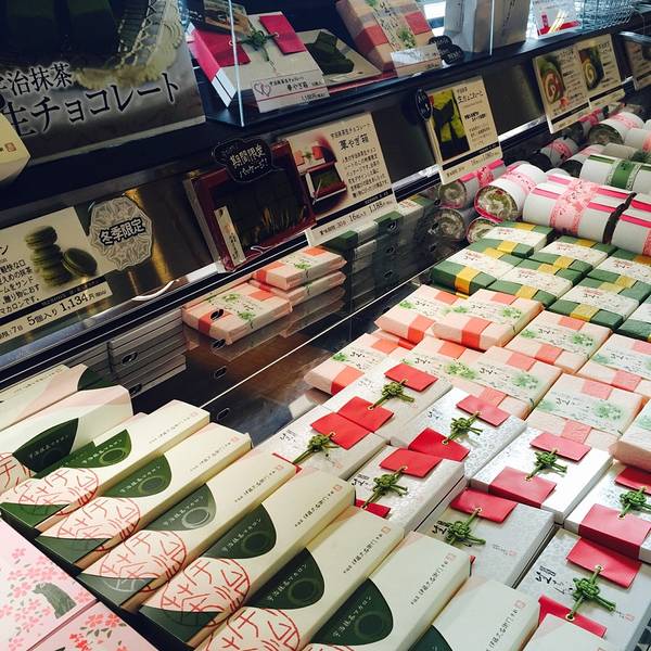 宇治有很多抹茶店,这家算是很有名的一家店了,店内出售各种抹茶做的点心可以带走,也可以在店里点餐食用,但是游客特别多,想在店内点餐享用需要排很长很长的队,所以只在店里选购了一些伴手礼。