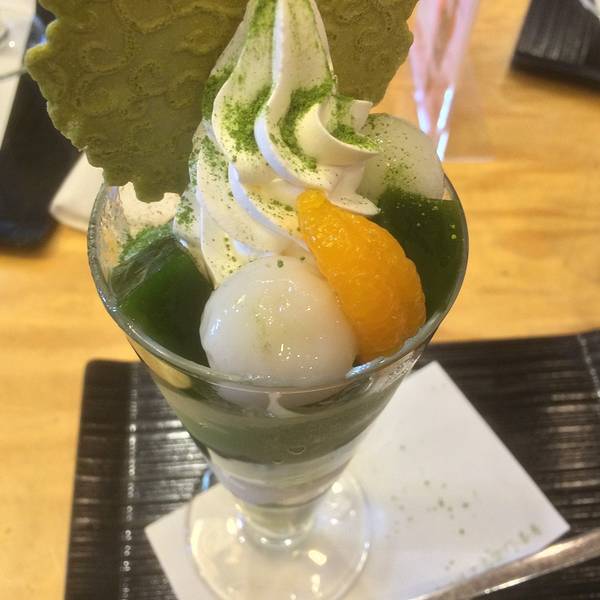 【体验】这里的抹茶味的其实明显微苦的,不是国内多数制品甜蜜的口感,所以心里有个数。招牌抹茶地下有渣,但是不涩口。点了一个招牌冰淇淋,里面有芋圆、牛奶冰淇淋,混合了抹茶,一份价格40多元,大约2个人分着吃也够了,口感着实不错。门口的特产处瑞士卷不错,抹茶混合奶油的口味,口感细腻,价格也挺华丽的,一个售价60元左右。
