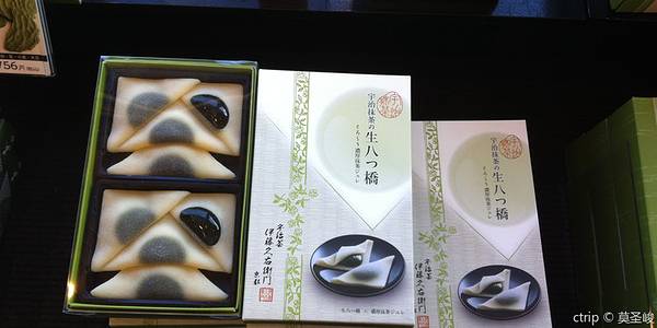 JR宇治站的前面就有两家宇治最为有名的抹茶店,一家是伊藤久右卫门,另外一家是中村藤吉。我们12:00过参观完平等院准备离开宇治的时候,打算要吃一下抹茶,结果两家店都是排长队,至少要排一个小时以后。但是来到...JR宇治站的前面就有两家宇治最为有名的抹茶店,一家是伊藤久右卫门,另外一家是中村藤吉。我们12:00过参观完平等院准备离开宇治的时候,打算要吃一下抹茶,结果两家店都是排长队,至少要排一个小时以后。但是来到宇汉治不吃点抹茶又总是怪怪的,所以只好在店里面买一些抹茶点心,保质期也不是太长,买了之后得赶紧的吃完。