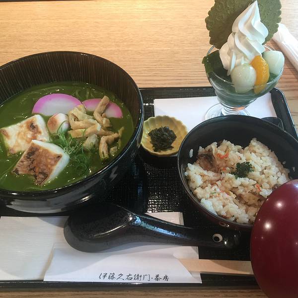 到了宇治后的第一件事,先打卡歇脚。原本对于网红店不抱太大希望的我来说,伊藤久右卫门的食物好吃的有点出乎意料,特别是抹茶咖喱乌冬面,N个赞!