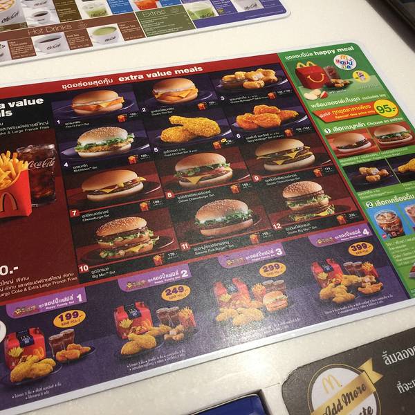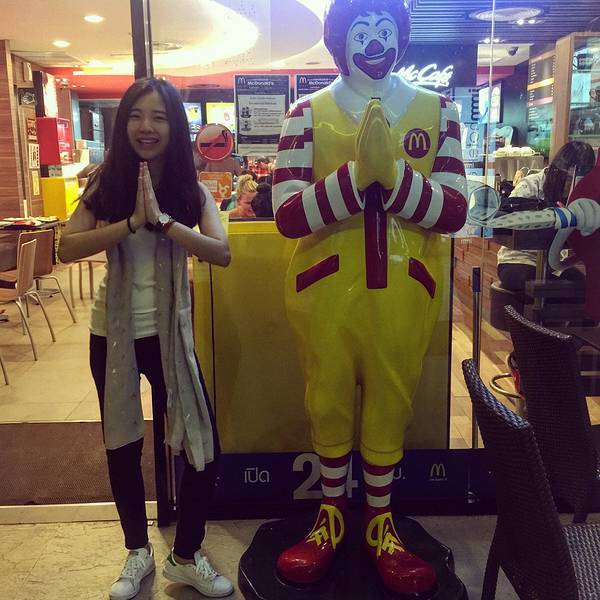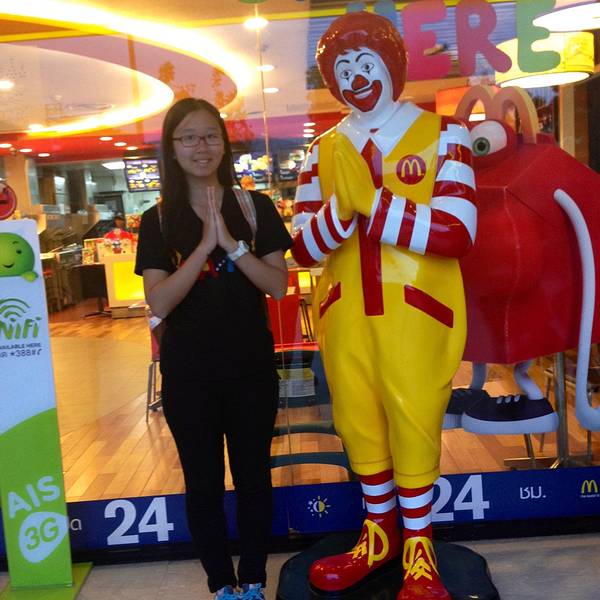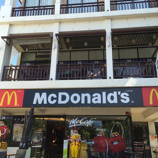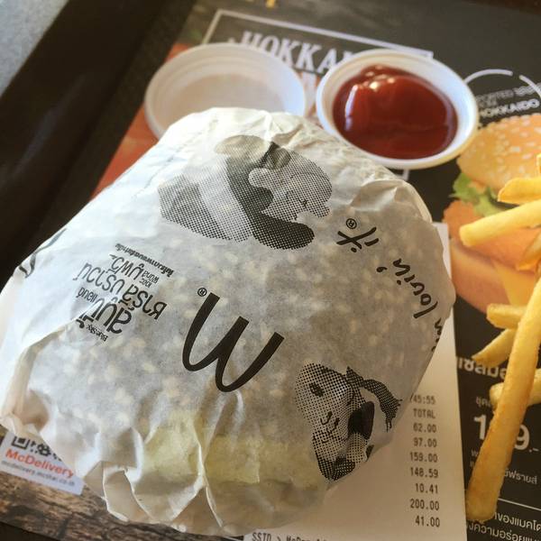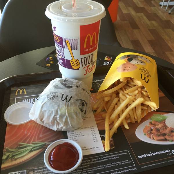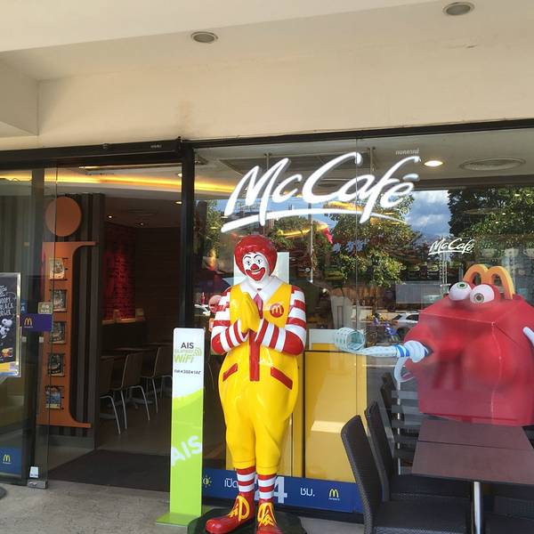 这家麦当劳餐厅在塔佩门对面,地理位置很棒,逛了一上午寺庙,正好经过这家店,便果断来尝试麦叔叔的异国风味。说来惭愧,旅行时光一半餐都是MK记的我来清迈快半个月,竟然还是第一次走进麦当劳,还是熟悉的菜单,还是那熟悉的味道。门口都可以看到很多小伙伴在跟麦当劳叔叔合影,还是十分受欢迎的嘛。看着眼花缭乱的菜单,随手点了今日的特价餐,习惯的Up size和Coke no ice。不过159泰铢,人民币30左右的样子。结果给了我可乐之后跟我说等待三十分钟😂😂😂。我去,这不是今天special吗?三十分钟,笑死我了,好在我并不饿,就窝在一楼吹冷气,慢慢等。一楼点餐区和McCafe就占了近一半面积,就餐区较少,可以去二楼用餐,环境不错,冷气也十分充足,外侧还有露天的雅座,方便不喜欢空调的小伙伴,还可以看着不远处的塔佩门和川流不息的游客和车辆,舒适程度不言而喻。另外二楼还有卫生间,男女分开,干净整洁。餐盘内会放两个碟子,可以自己去调味区“榨取”番茄酱和辣椒,还是十分节约和环保的。可乐真是大份,太大份,薯条🍟简直要把我撑死,这个分量太恐怖了,我左后只吃了三分之一的薯条和五分之一的可乐,汉堡🍔是一口没动,真心太大份了。总的来说,相比较国内这种程度旅游区的价位和质量,这家麦当劳实在超值,建议大家既然出国了,还是可以去品尝一下异国风情的味道吧✌️
