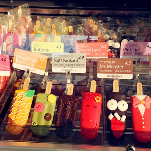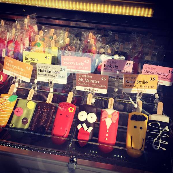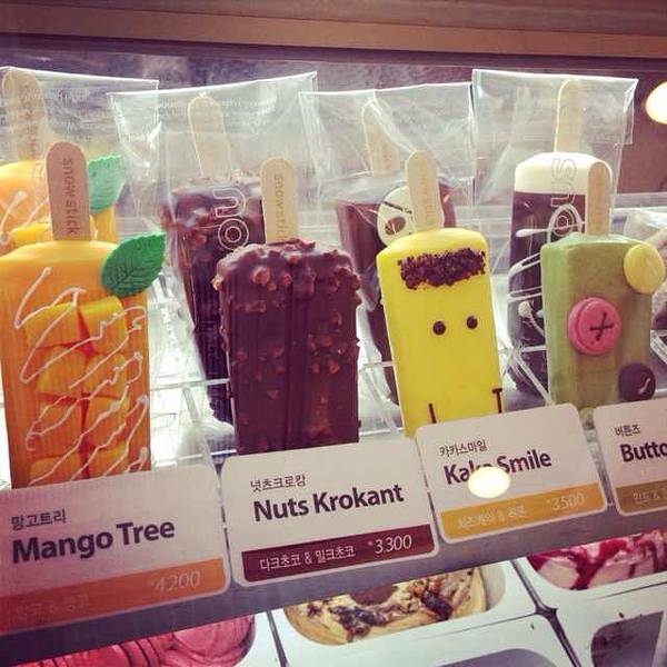 hello kitty cafe 出来,我两打算再转一圈弘大。 弘大有名的“snow spoon”冰淇淋店。 棒冰都做得好可爱,只可惜实在吃不下。