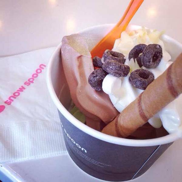 【Snow Spoon冰淇淋店】 不要以为冰淇淋只是属于夏季的回忆,冰淇淋也可以是适合四季的健康饮食!Snow Spoon的主打低脂优格冰淇淋,它继承了意大利传统冰淇淋“Bigatton”的风味。缤纷冰棍也独具特色。秋日暖暖的午后,就来到Snow Spoon体验健康冰淇淋的魅力吧! Tip: 语言不通却能轻松点单? 想要Snow Spoon冰淇淋杯,总共分四步: 1.选择纸杯(分为350cc和750cc) 2.来到冰淇淋机前,依据个人口味和食量将优格冰淇淋盛入杯中 3.在辅料柜为冰淇淋加入喜欢的辅料 4.为自己创造的冰淇淋杯称重结账。