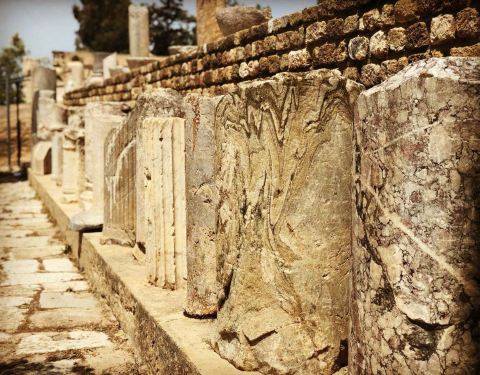 参观的是罗马在腓尼基人的城市上又扩大修建的遗址,分两部分,一部分生活的地方,一部分是罗马人的浴池。 面对地中海深沉的蓝,在残垣断壁间游走,看到巨大的石柱与精美的雕花,不停的叹惜,我与三千年前的时光竟然就这样有了交集。