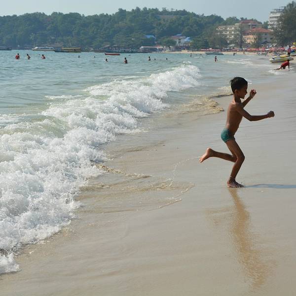 远处就是西哈努克港 西哈努克港(Sihanohkville),原名磅逊(KampongSom),是柬埔寨的最大港口城市;西哈努克港是柬埔寨最繁忙的海岸港口,也是柬埔寨国内第二大重要的旅游城市,位于柬埔寨西南沿海,很多金边的白领阶层周末都会来这里休闲度假。该市于50年代末才开始发展。至今,这里的主要的4个海滩SokhaBeach、OchheutealBeach、IndependenceBeach、VictoryBeach还没有被高度开发,保持着自然风貌。主要出海游玩海岛有高龙岛,龙岛等,每年会有一定数量的游客来这里享受阳光海滩,体验平静的休闲时光。 由于之后的行程计划原因,我只在海滩上漫步了半天,当然时间允许的可以去附近的岛上玩一天,每家住宿都是代理商,可以帮你联系出海的相关事宜,我住的那家店高龙岛标价是20美元。我家乡乌鲁木齐是世界上离海洋最远的城市,但我对大海和沙滩竟然没有很强烈的向往,估计是被国内各大海滩的场景吓坏了。但在西哈努克绝对会不一样。