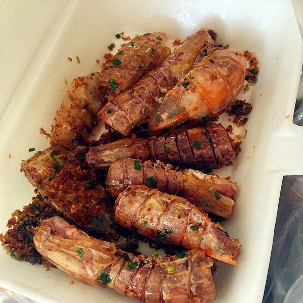 从岛上回到西哈努克那天,才真正的感受了一下这个城市。那天天很蓝,太阳很毒,我们租了旅馆的摩托,在西哈努克城里闲逛,每到一个地方市场是必须去的,到了市场就被那些活蹦乱跳的大螃蟹大皮皮虾馋的迈不动步啦,惊喜的是竟然买完直接就能够加工!那个皮皮虾的个头真是大啊!在这个市场讲价绝对是个必备的技能啊!有的摊位要价实在离谱,货比三家后,挑了四只大螃蟹,一公斤皮皮虾,一斤花螺(这个花螺真的好贵,无奈旭哥钦点)加工的店就在市场边上,非常简陋,排队加工的人还挺多,当地人也是在市场里买了海鲜到这边加工呢,本来我们的海鲜都被上屉蒸了,看到前边一个当地人做了蒜蓉炒皮皮虾,和酱油炒蟹,香味扑鼻,瞬间口水直流,果断加钱改做法,还学着当地人买了冰茶和冰咖啡,回旅馆的餐厅要上一瓶啤酒,开始享用大餐!(至今说起这段情景依然口水直流,回味无穷呀)