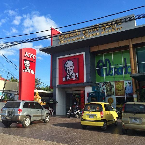 西哈努克,其实是西哈努克港(Sihanohkville),是柬埔寨最大的港口城市,也是柬埔寨除了暹粒之外第二大旅游城市!在来这里之前我一直以为很少有中国人来,我错了,其实中国游客竟然占到了访客总量的百分之六十以上!从大巴车进入西哈努克的地界,就看见车窗外熟悉的中文不断的忽闪而过,街道两旁有中文招牌的店特别多,路边小店都能随随便便看到中国的零食、中国的饮料,一时间我有些恍惚,有种到了祖国某个城市的错觉!