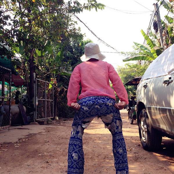 无所事事的一天,骑着车随意走走,看到了公园里的野猴,我喂了猴子们一些草莓奶昔,哈哈哈,还去了大港口,大家千万不要去,灰尘特别大,都是大车在拉货。傍晚还去做了oil massage。在今天终于评出了旅行三大臭之首!在高龙岛划过船之后大驰子有些晒伤了,肩膀和腿有些刺痛,他决定穿他的风情长裤(已开档)和防晒衫遮阳,可是要跨摩托车的过程中,裆越开越大,在一个烤鱿鱼摊位买鱿鱼的时候,一个小孩看见他的裤子就开始笑,还有一个小孩专门特意绕到他身后,蹲下了往上看,看到之后哈哈大笑,赶紧跑到另一个小孩身边让另外的小孩也看他的裤子,大驰子尴尬不已,只好夹住裤子,不让这群闹腾的孩子看,简直笑死我了,终生难忘啊。大写的尴尬!!晚上做夜间大巴回的暹粒。